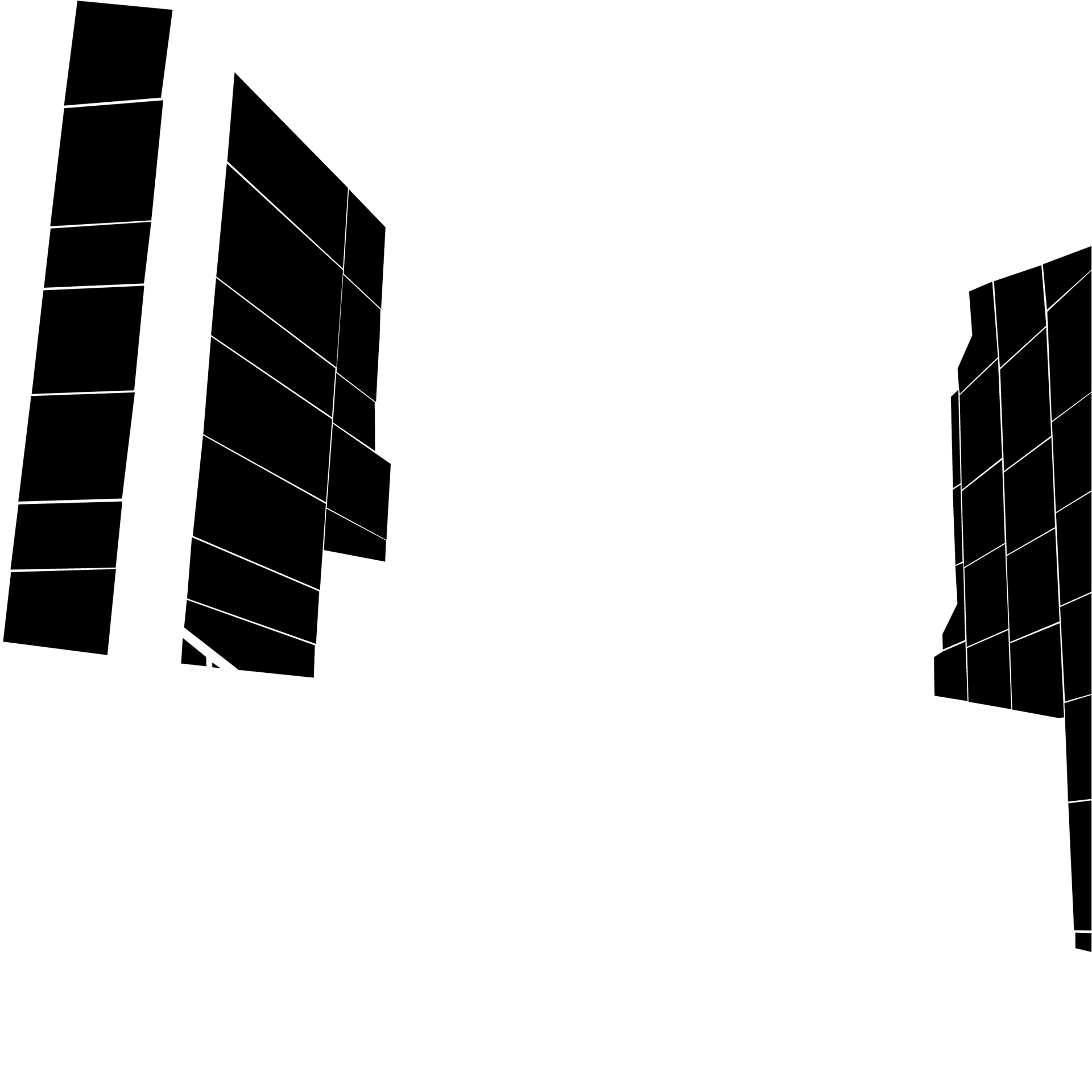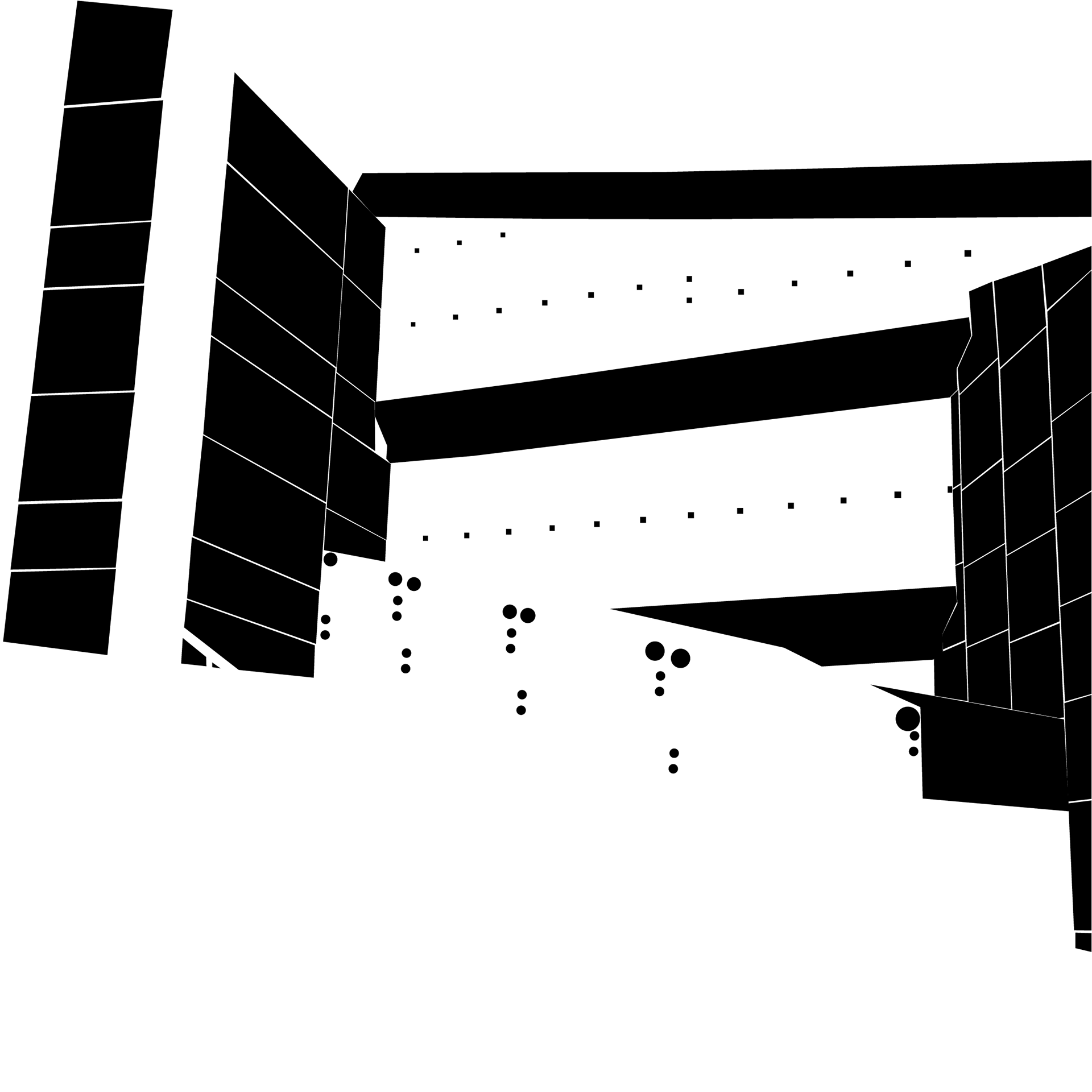 Plane study: Major architectural masses simplified into bold black planes to test figure/ground, negative space, and overall visual weight.