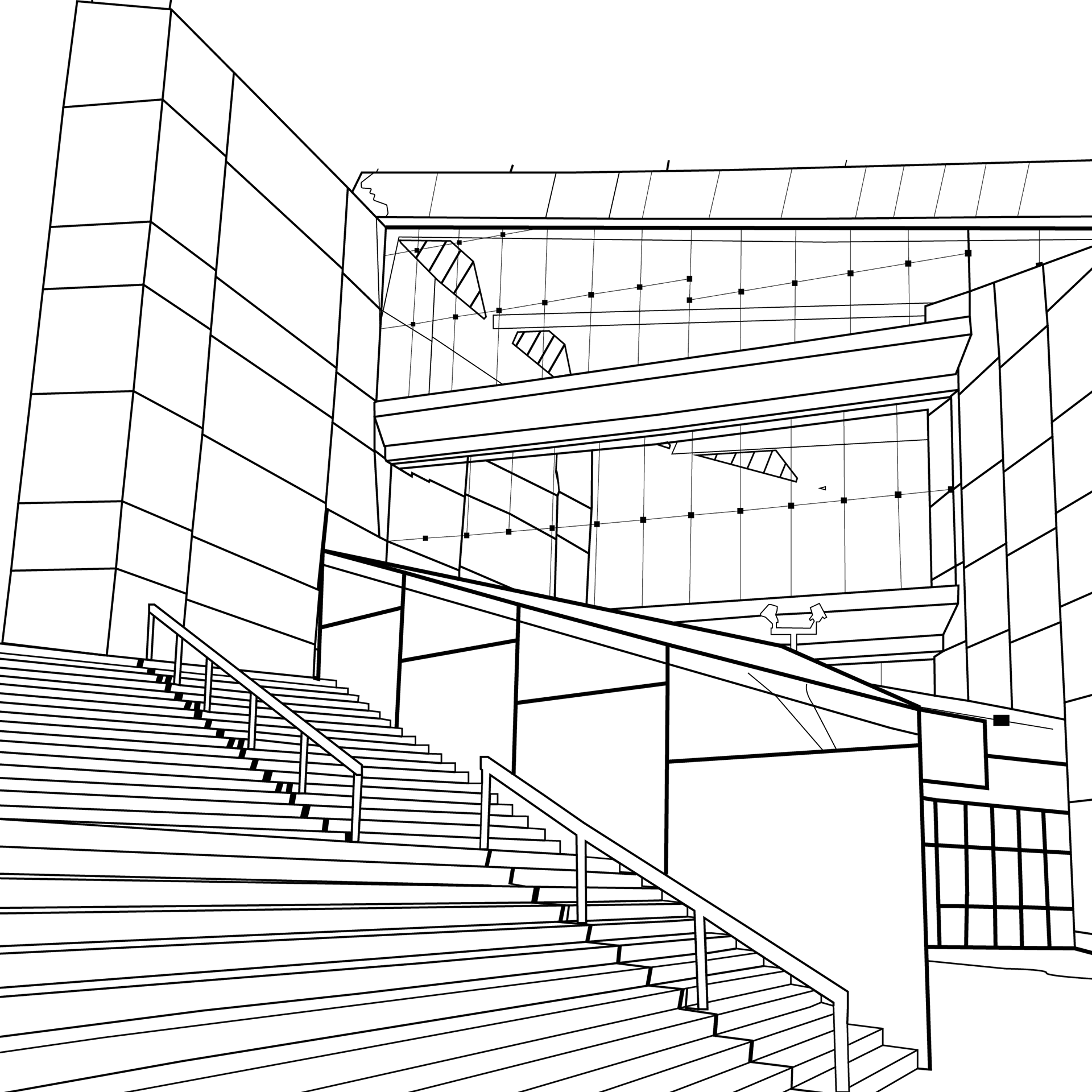 Line study: Linear sets emphasize direction, repetition, and rhythm—translating railings, columns, and facade cadence into structural movement.