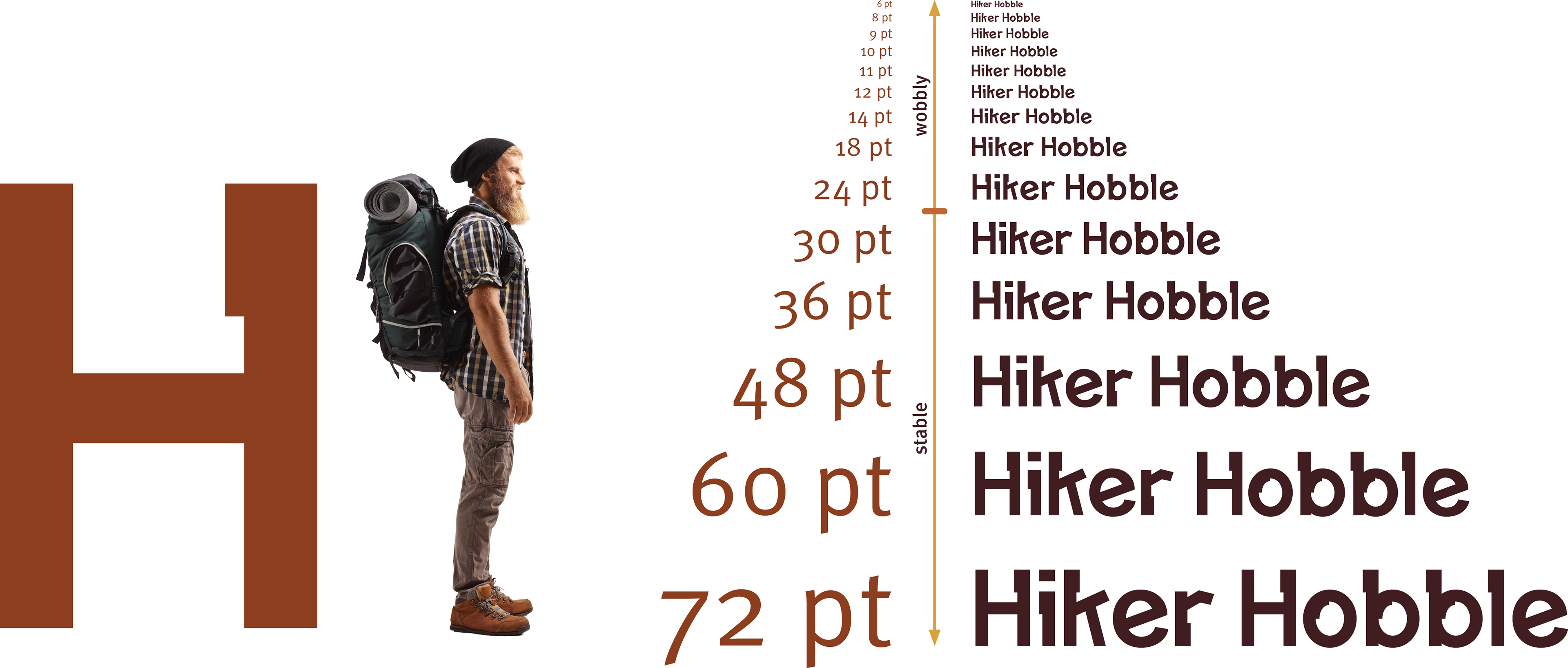 The letterforms were developed through iterative vector refinement, using controlled stroke weight, compressed counters, and minimal contrast between thick and thin strokes to sustain tonal consistency across the set. A tall x-height supports legibility, while subtle diagonal relationships and calibrated terminal transitions introduce movement without weakening the underlying geometry. Spacing and internal counterforms were adjusted through repeated proofing to stabilize rhythm, align optical balance, and preserve coherence between Hiker and Hobble as a unified mark.
